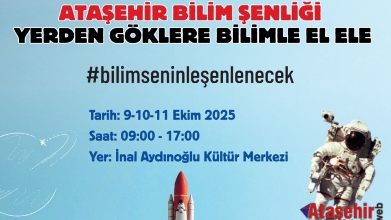 TÜBİTAK 4007 Bilim Toplum Projesi kapsamında Ataşehir İlçe Milli Eğitim Müdürlüğü tarafından “Yerden Göklere Bilimle Elele” sloganıyla hazırlanan “Ataşehir Bilim Şenliği”, 9 - 10 - 11 Ekim tarihlerinde 09.00 - 17.00 saatleri arasında İnal Aydınoğlu Kültür Merkezi’nde gerçekleştirilecek.