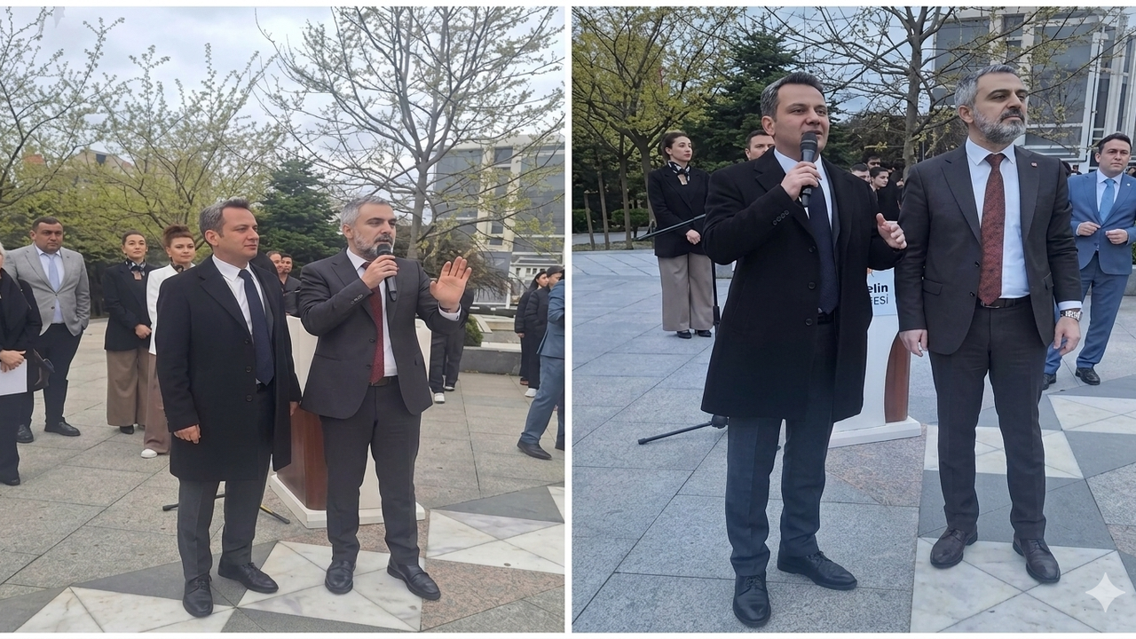 Ataşehir Cumhuriyet Meydanı’nda düzenlenen resmi tören sırasında, siyasi görüş ayrılıkları nedeniyle gençler arasında tansiyon yükseldi. Görevden uzaklaştırılan Onursal Adıgüzel’in fotoğraflarının yer aldığı dövizler üzerinden başlayan tartışma, bir anda ortamı gerdi. Ancak beklenen kaosu, iki partinin lider isimleri engelledi.