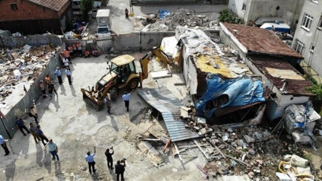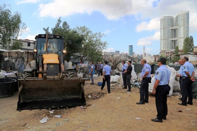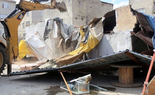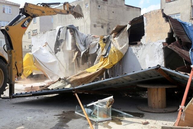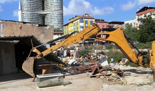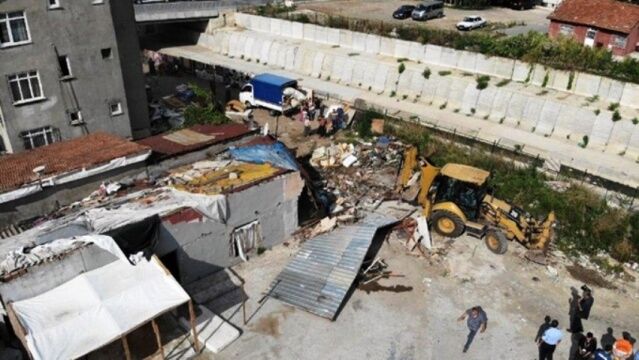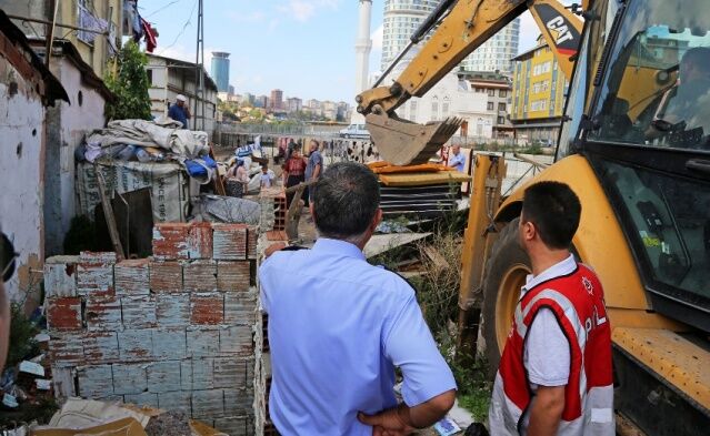 ATAŞEHİR KURBAĞALIDERE YATAĞINDA BULUNAN BARAKALAR YIKILDI