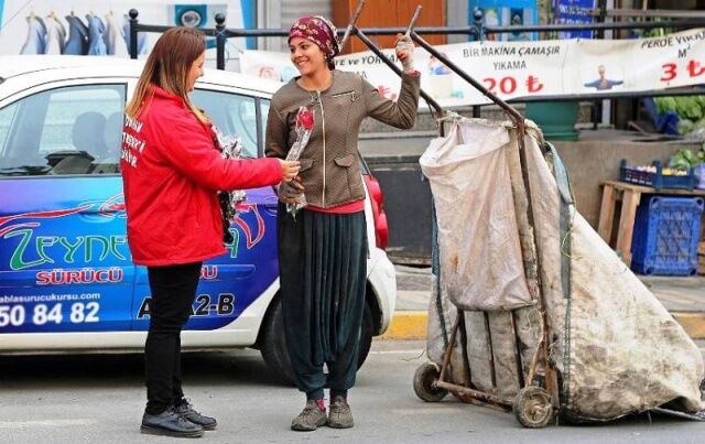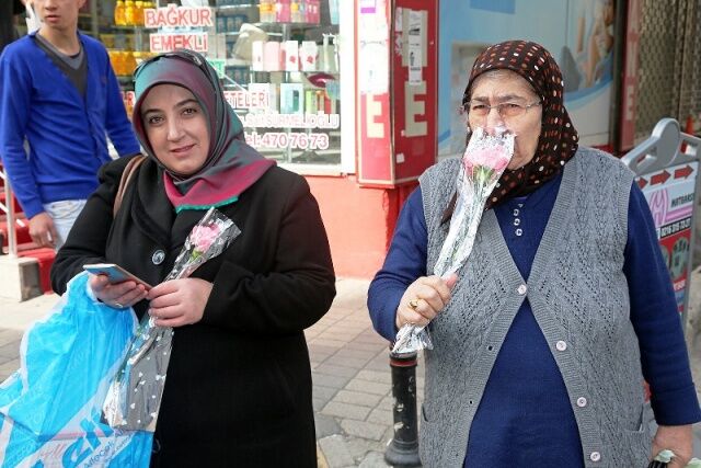 Ataşehirli kadınlara karanfil dağıtıldı.