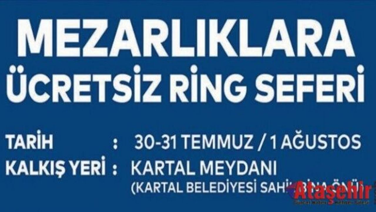 Kartal Belediyesi tarafından Kurban Bayramı dolaysıyla Arefe Günü ile Bayramın 1’inci ve 2'inci günü olmak üzere 3 gün boyunca vatandaşların mezarlık ziyaretleri için ücretsiz ulaşım hizmeti sunulacak.