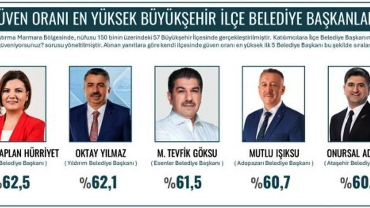 Araştırma sonuçları, yerel yönetim performansında partiler arası dengeli bir tabloyu da gözler önüne serdi. İlk 5 basamakta 3 AK Partili ve 2 CHP’li başkanın yer alması, başarılı belediyecilik anlayışının Marmara genelinde farklı siyasi kimliklerle hayat bulduğunu gösterdi.