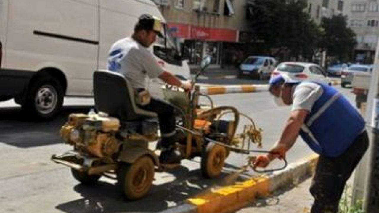 Cadde ve sokaklarda yer alan kaldırımlar ekipler tarafından özenle boyanırken, çevrenin görüntüsü de yenilenmiş oluyor.