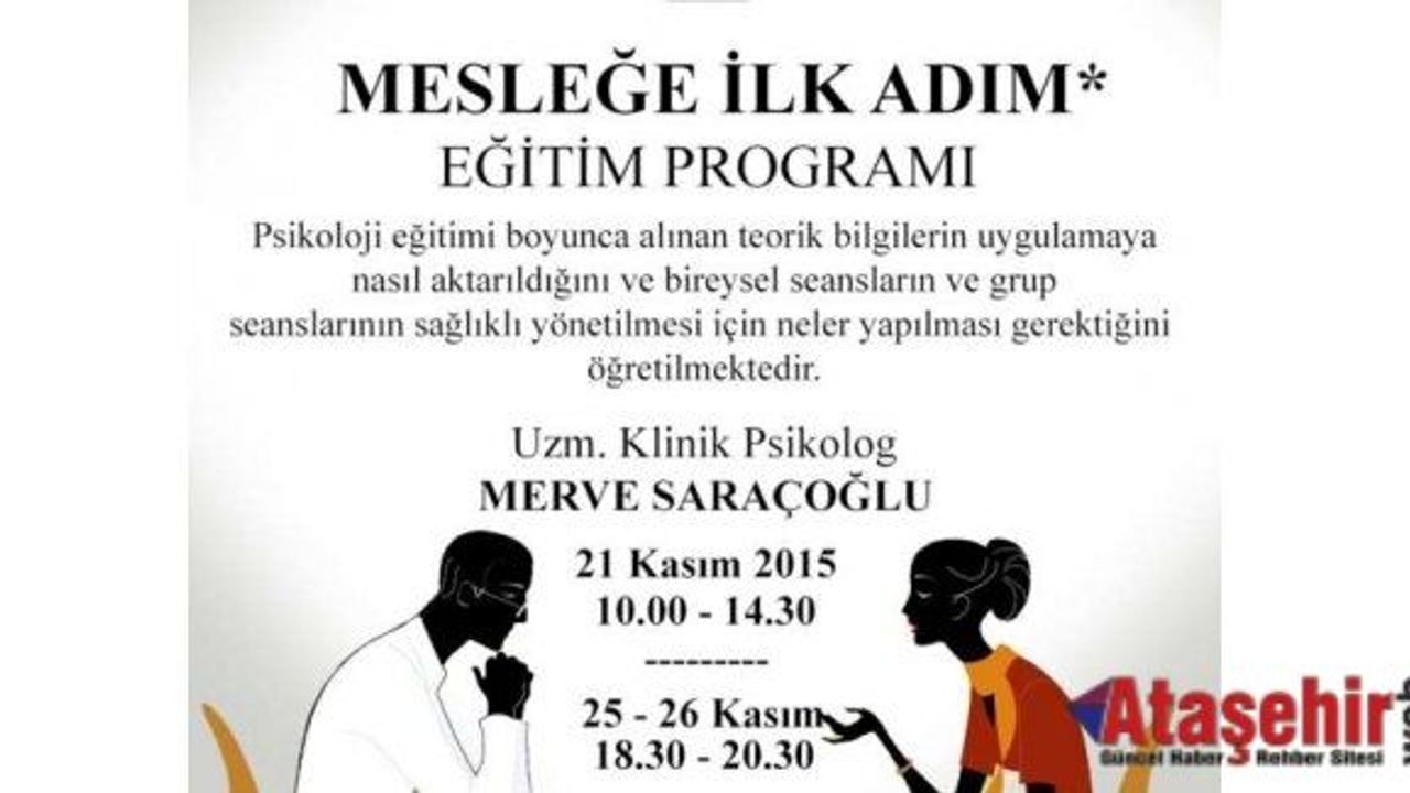‘Mesleğe ilk adım eğitim programı’ adı verilen bu özel eğitim; 21 Kasım ile 25-26 Kasım tarihlerinde Uzman Klinik Psikolog Merve Saraçoğlu tarafından gerçekleştirilecek.