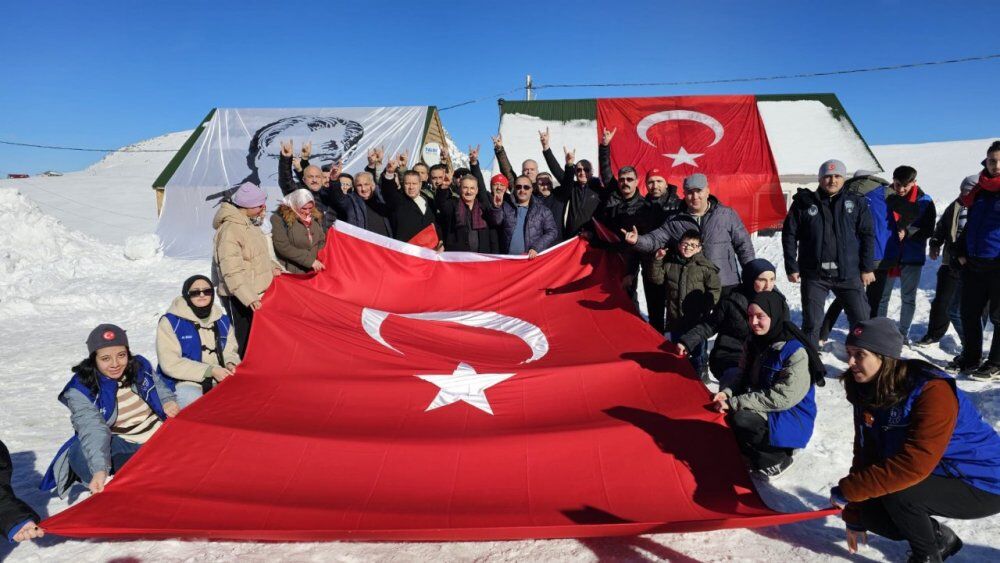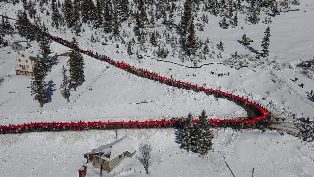Kent merkezi ile Sarıkamış ilçesinden otobüslerle zirveye ulaşan katılımcılar, Türk bayraklarıyla yürüyerek toplanma alanına geldi. Vatandaşlar, Kızılçubuk bölgesinde şehitler anısına yapılan kardan heykellerin önünde fotoğraf çektirdi.