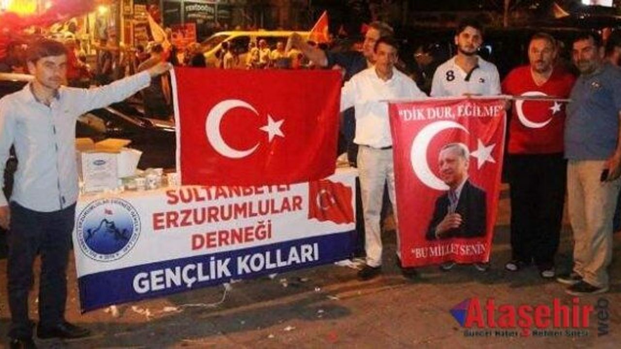 İlk günden beri demokrasi nöbetine devam eden Sultanbeyli Erzurumlular Derneği ve Gençlik kolları adına Yönetim Kurulu Başkanı Ali Sezer; ‘’15 Temmuz Cuma gecesi yaşanan hain darbe girişimine karşı tüm Türkiye tek yürek olduk. Birlik ve beraberliğimize kasteden alçaklara dur dedik. Vatan için canını bile hiçe sayan halkımızın öncülüğünde ve emniyet güçlerimizin desteğiyle demokrasimize bir kez daha sahip çıktık.
