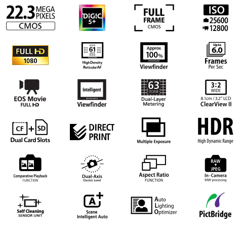 Canon is proud to present the highly anticipated EOS 5D Mark III. With supercharged EOS performance and stunning full frame, high-resolution image capture, the EOS 5D Mark III is designed to perform. Special optical technologies like the 61-Point High Density Reticular AF and an extended ISO range of 100-25600 (expandable to 50 (L), 51200 (H1) and 102400 (H2) make the EOS 5D Mark III ideal for shooting weddings in the studio or out in the field, and great for still photography. Advanced professional-level high definition video capabilities (that includes a host of industry-standard recording protocols and enhanced performance) make it possible to capture beautiful cinematic movies in EOS HD quality. A newly designed 22.3 Megapixel full-frame Canon CMOS sensor, Canon DIGIC 5+ Image Processor, and shooting performance up to 6.0 fps provide exceptional clarity and sharpness, even when capturing rapidly-unfolding scenes. Additional technological advancements include an Intelligent Viewfinder, Canon's advanced iFCL metering system, High Dynamic Range (HDR), and Multiple Exposure mode — all of which that help make the EOS 5D Mark III the perfect multimedia tool.